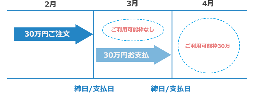お支払い後の4月にはご利用可能枠が30万円に戻ります。